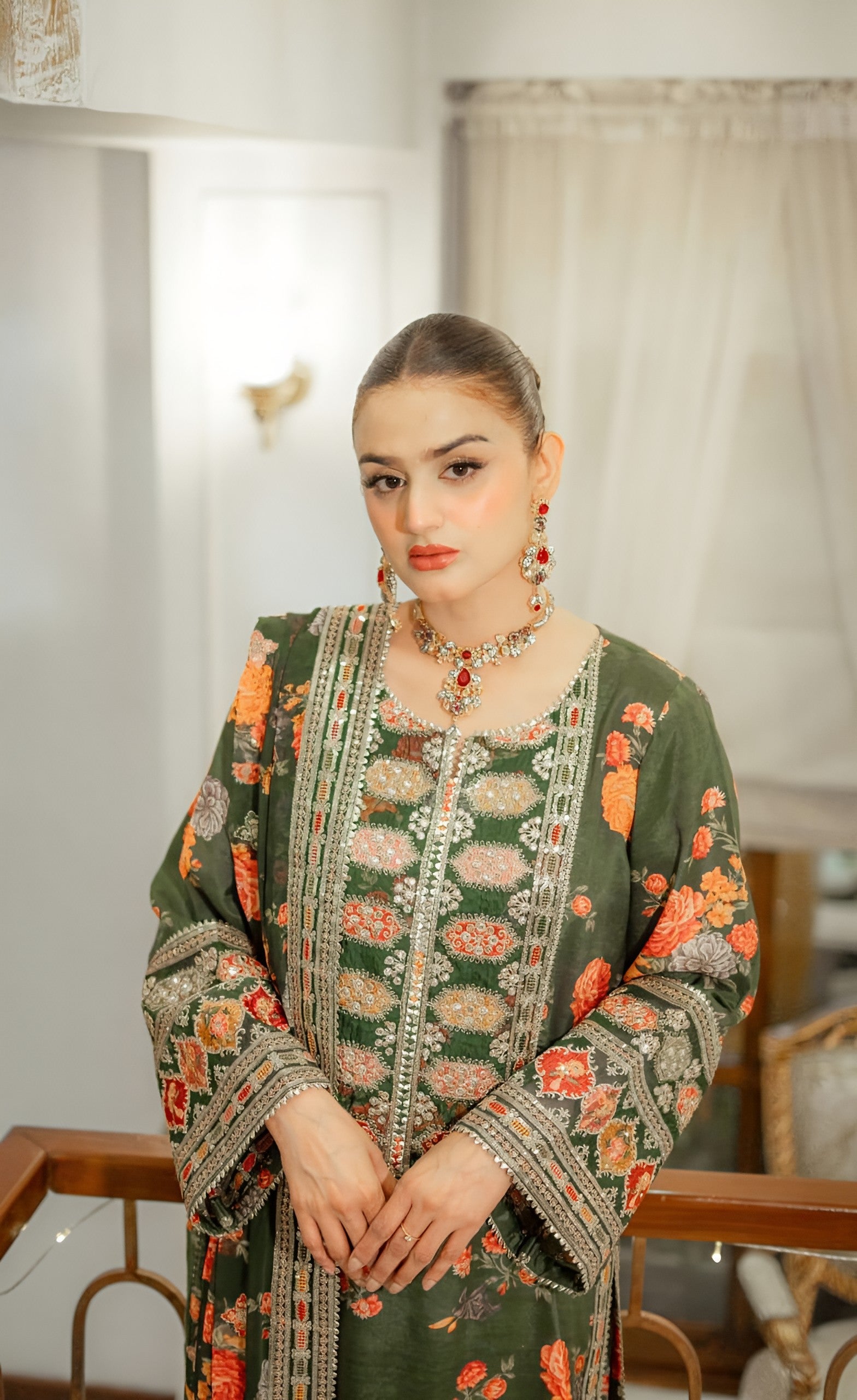Fabric: Digital Printed Shmoz Silk Shirt, Silk Dupatta, Shmoz Trouser