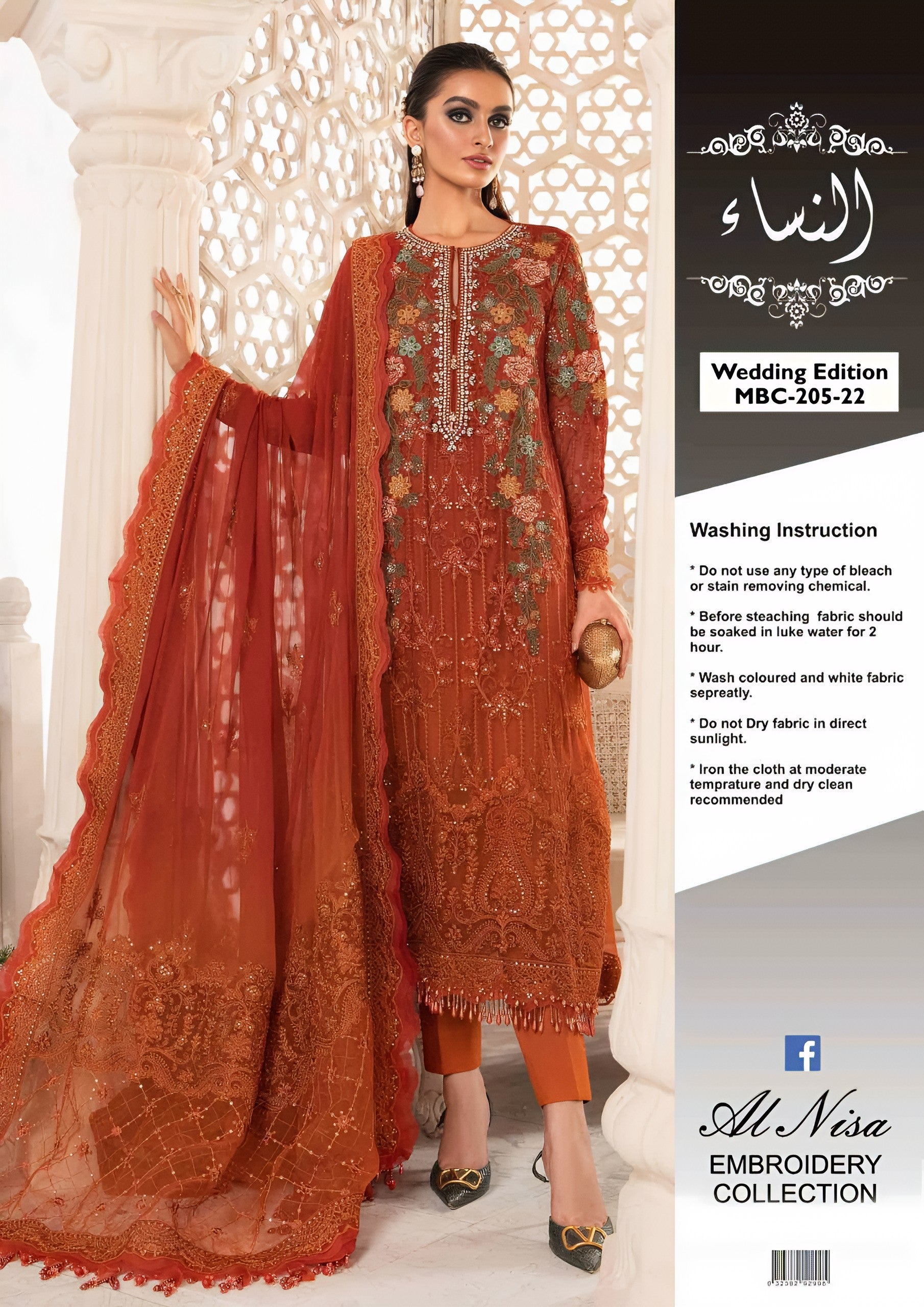 Graceful, detailed, and utterly stunning — the Maria B Alnisa Embroidery Collection MBD05-S22 captures the spirit of luxury fashion and sophistication, making it the ideal outfit for any grand event.